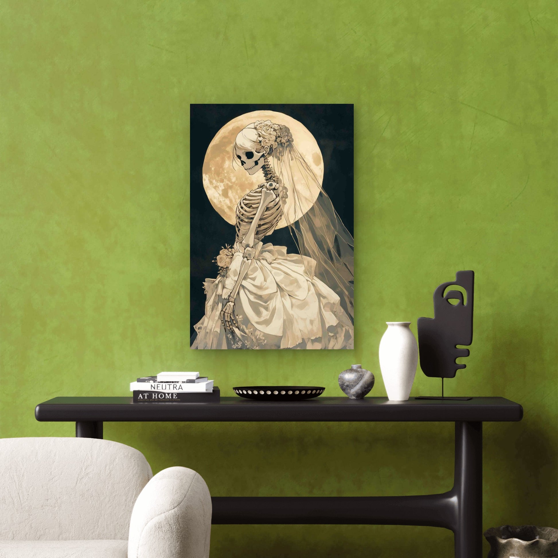 Gothic Skeleton Bride & Full Moon 60x90cm Metal Print Ready to Hang