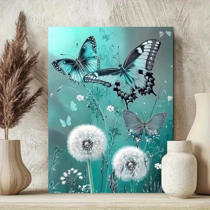 Gray Andelions With Butterflies, White Flowers 40x60cm Metal Print Ready to Hang
