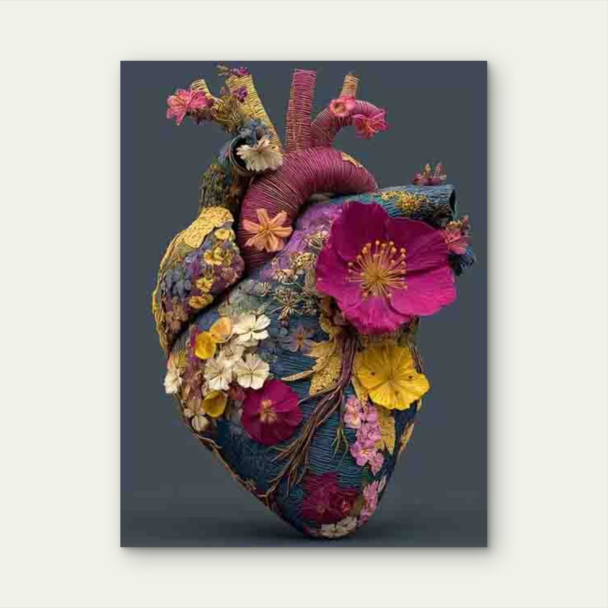 Lively Anatomical Heart with Dark Flowers 60x90cm Metal Print Ready to Hang