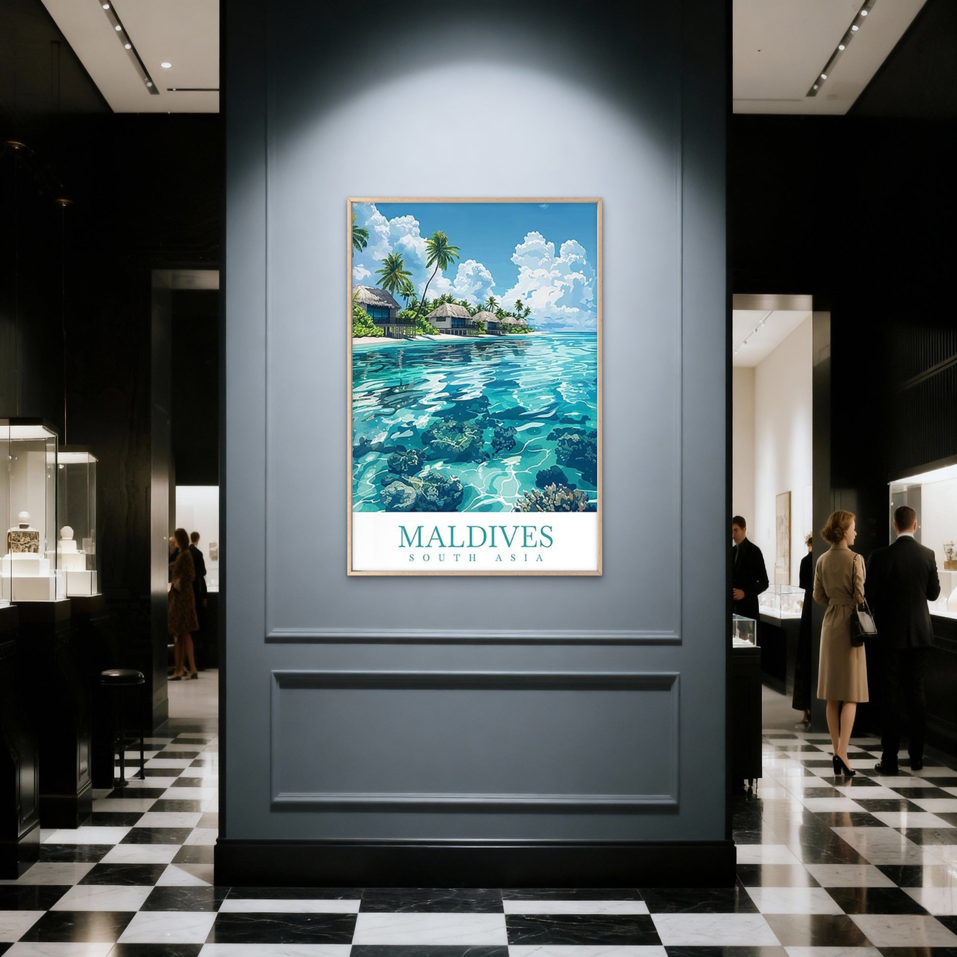 Maldives Tropical Island Turquoise Coral Reef Travel Poster Print Wall Art