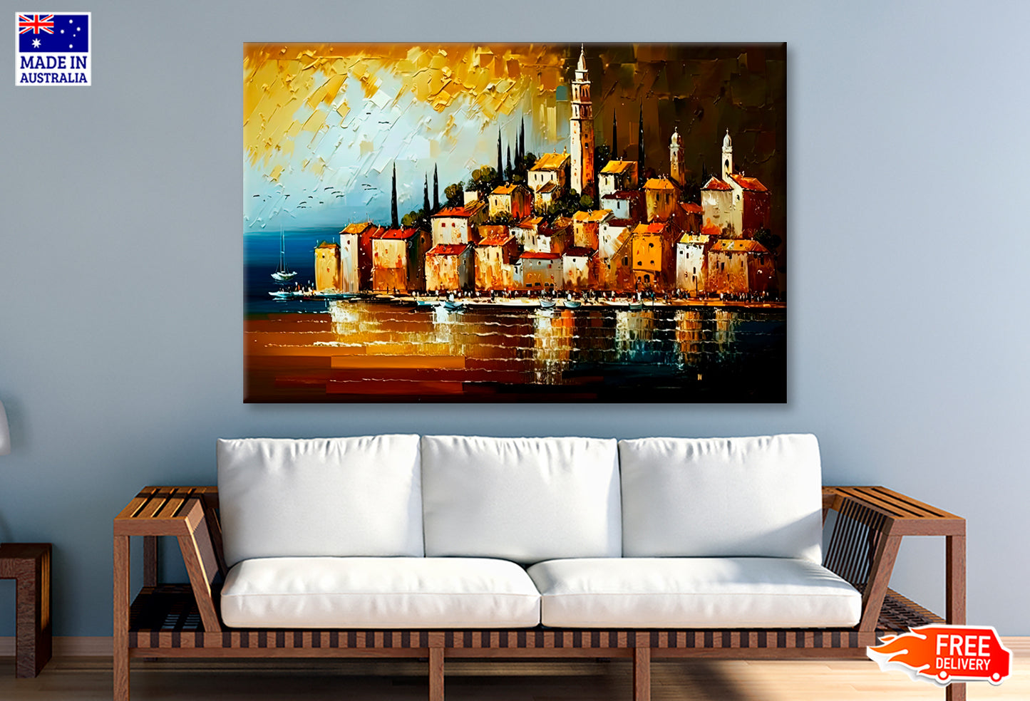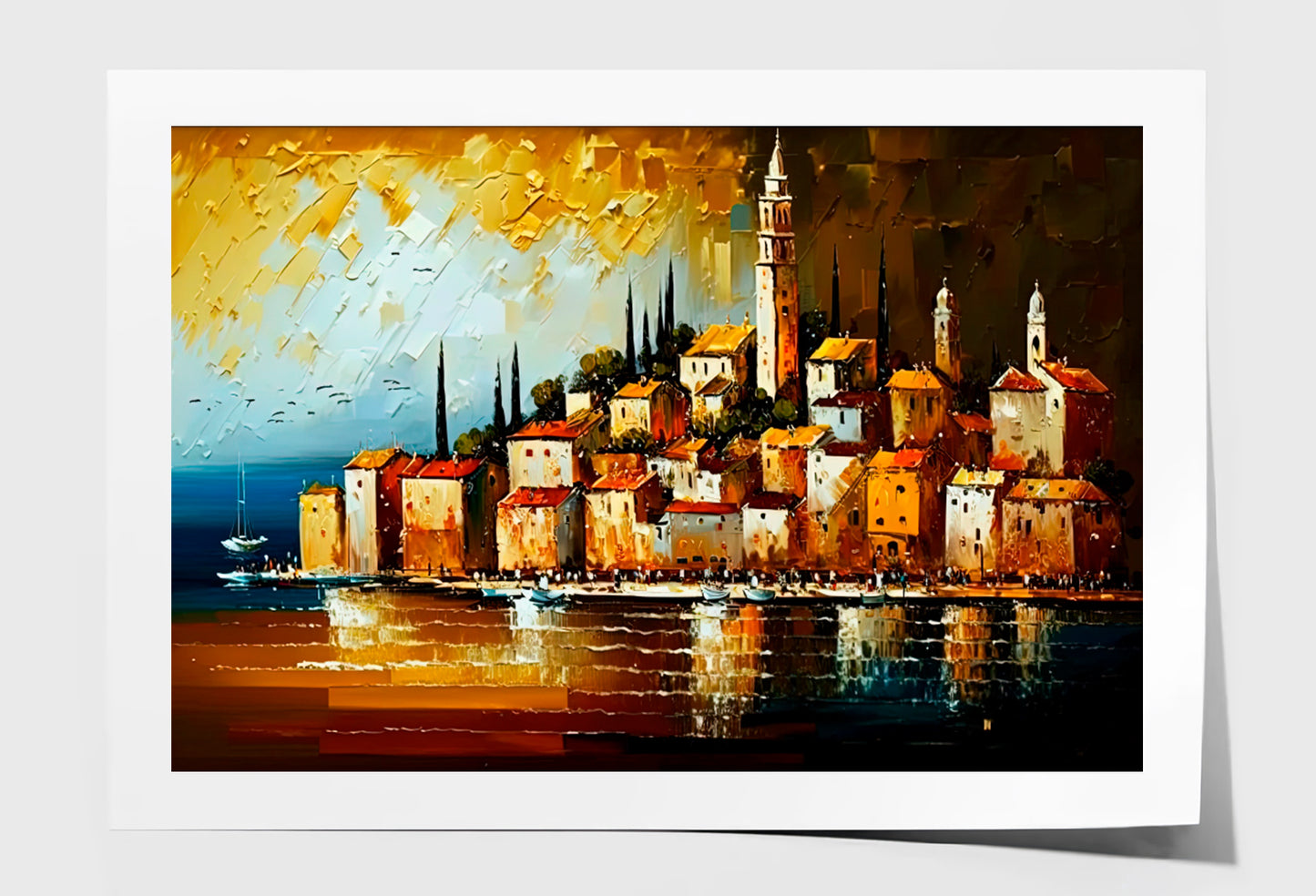 Mediterranean Coastal City Oil Painting Wall Art Limited Edition High Quality Print