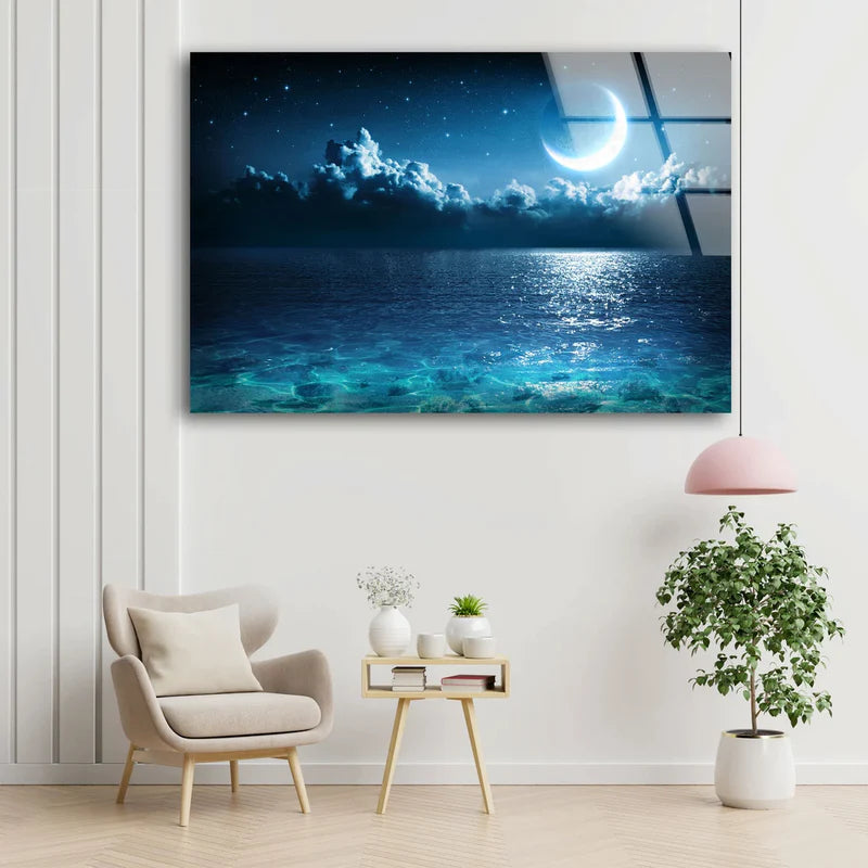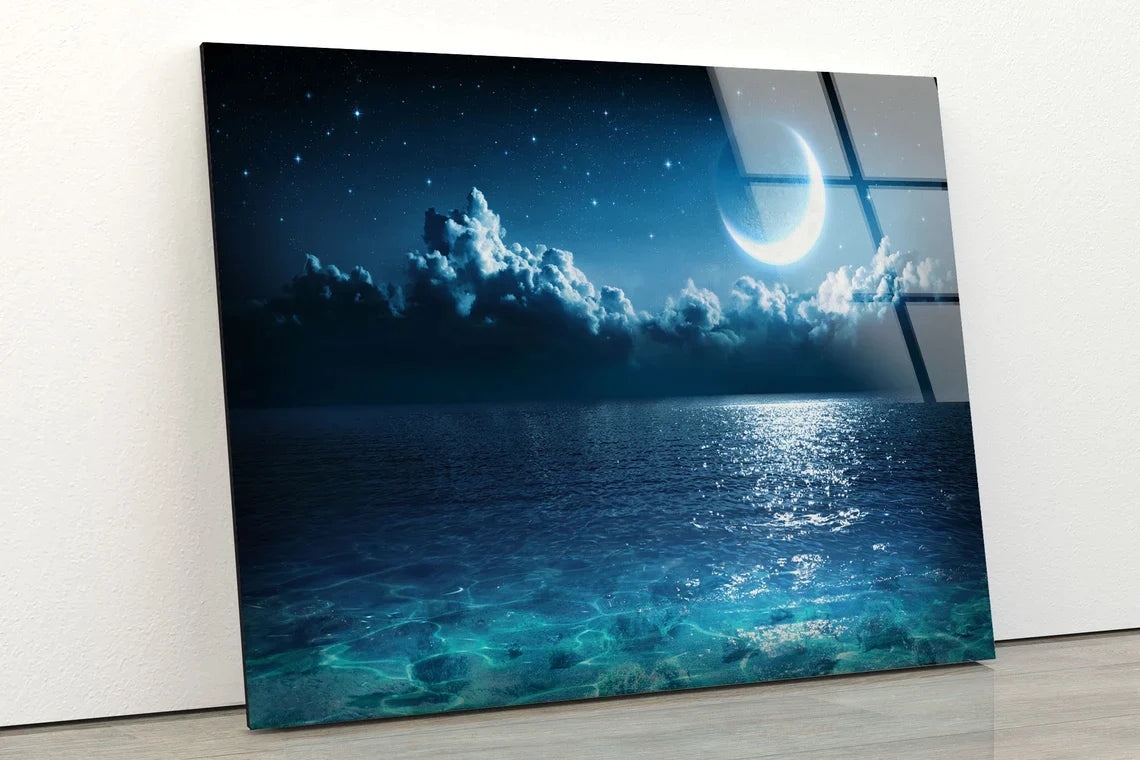 Moon Over Sea Night UV Direct Aluminum Print Australian Made Quality