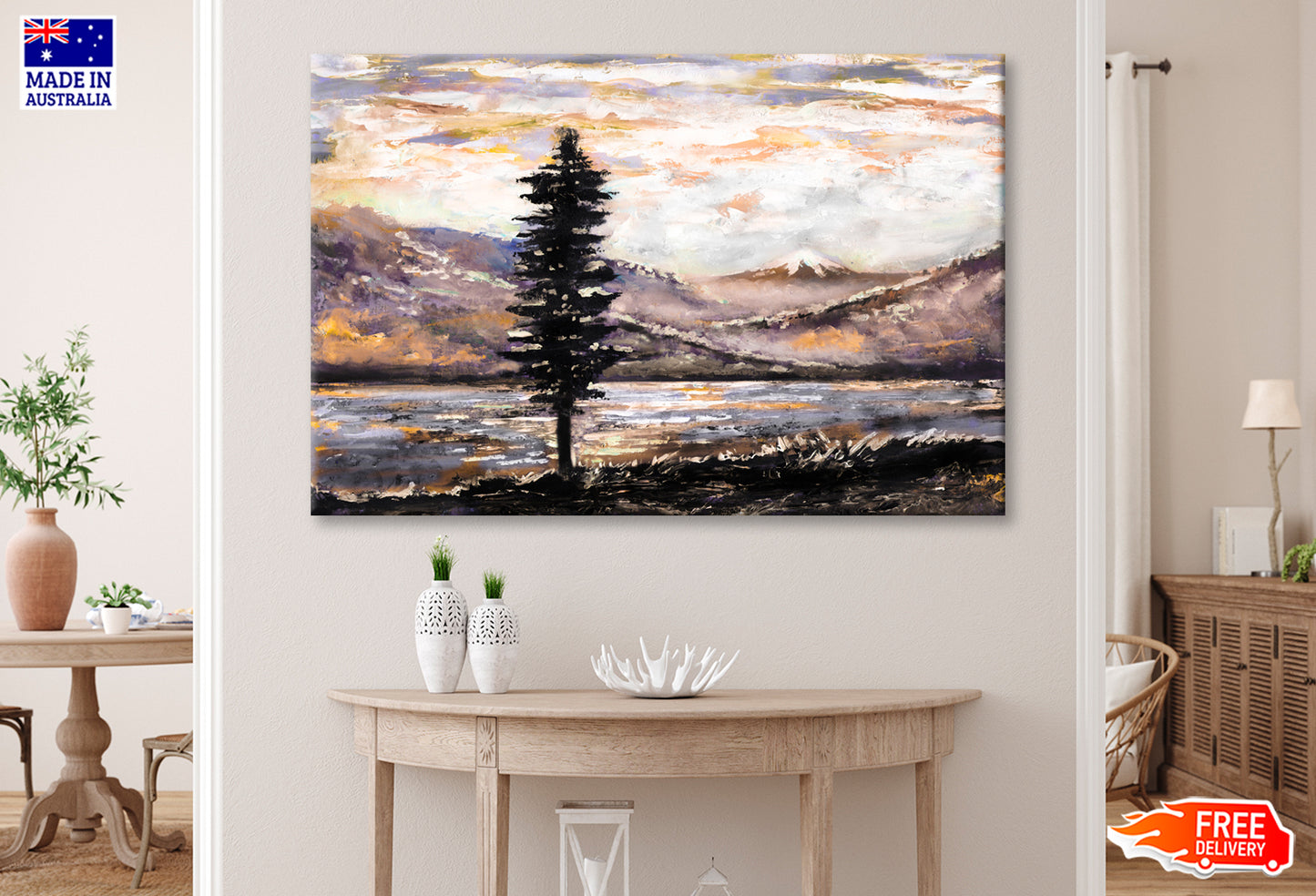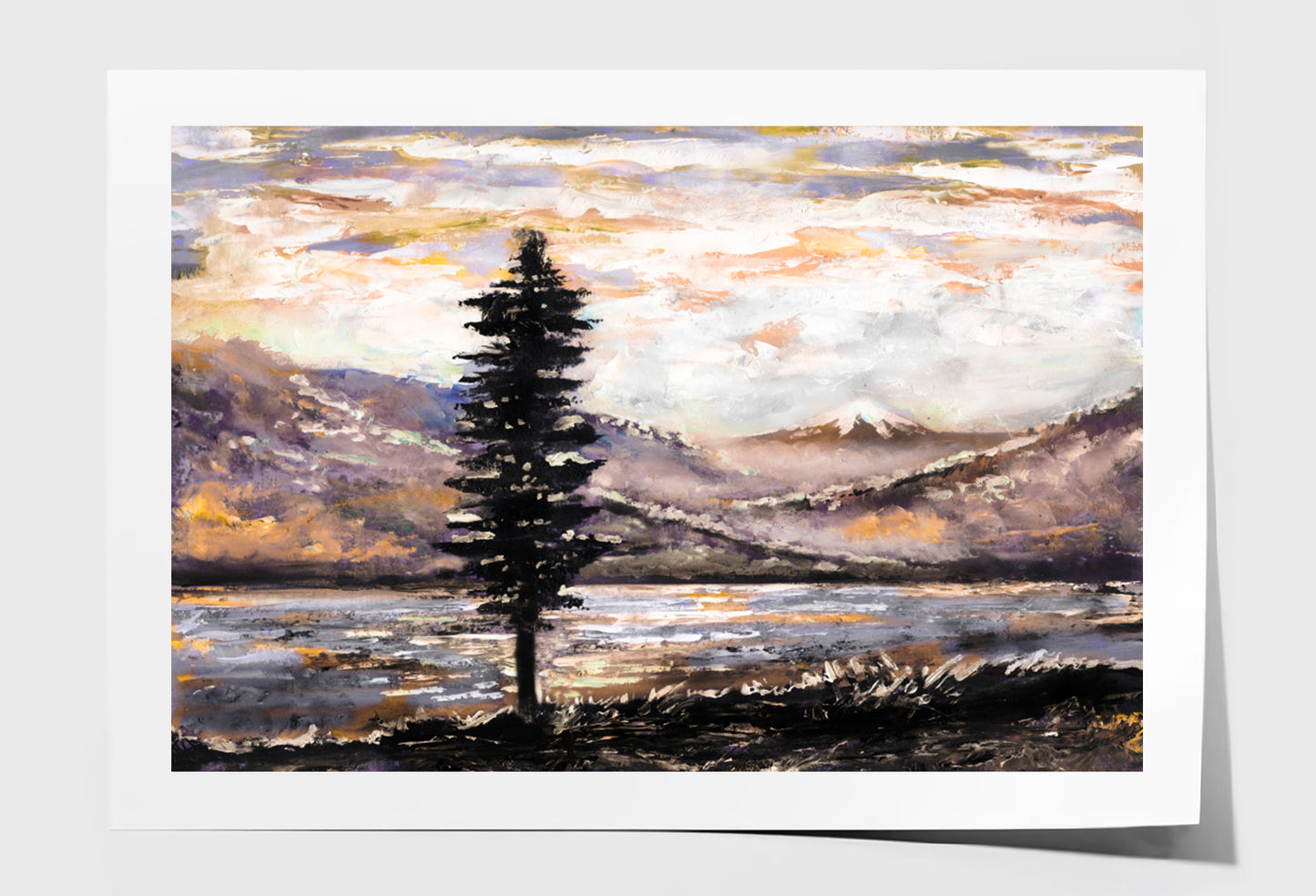 Mountain, Lake, Fog, Tree Oil Painting Wall Art Limited Edition High Quality Print