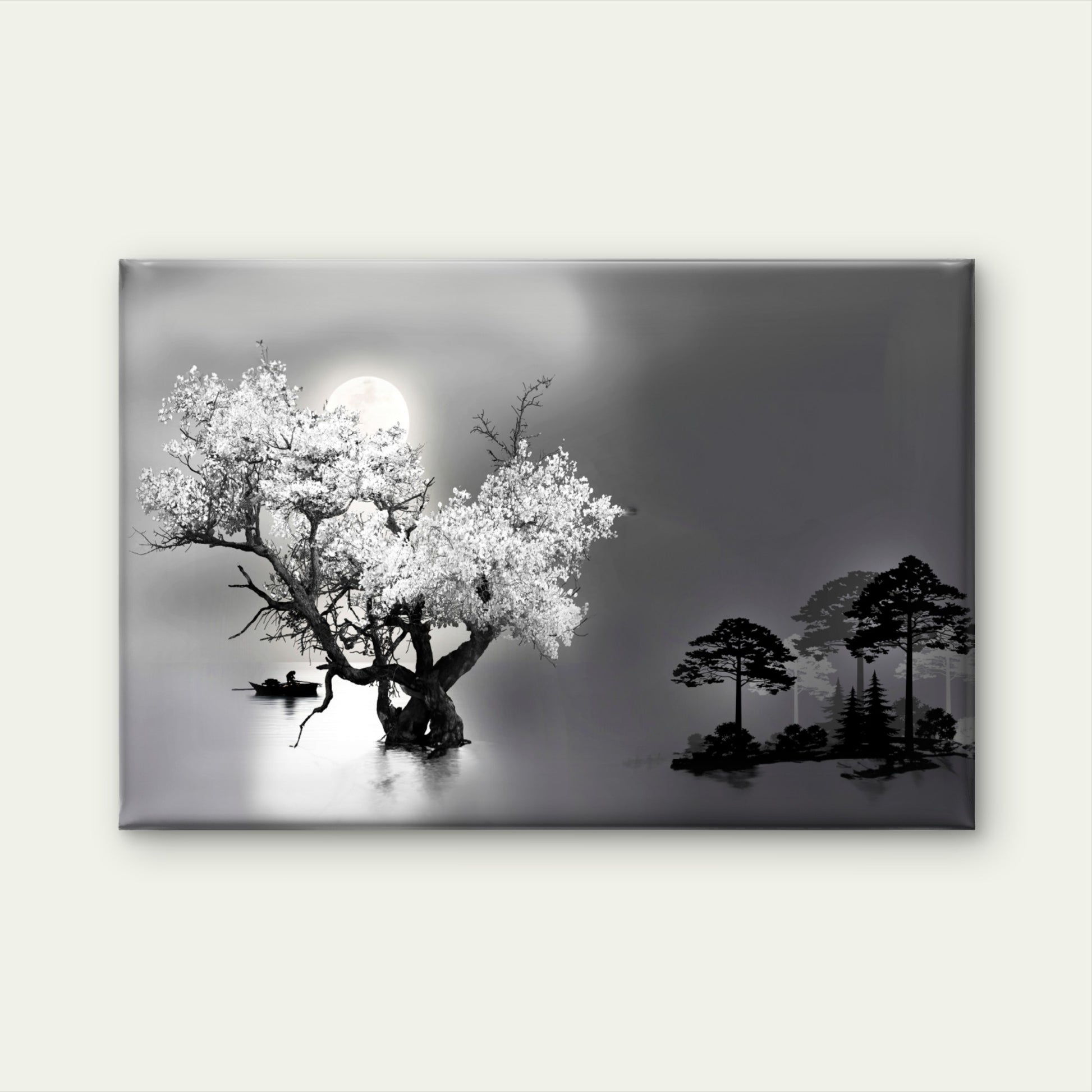 Black And White Lake Night Moon Sky Wall Art Decor 100% Australian Made