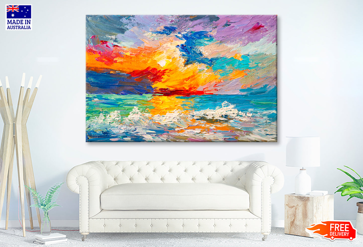 Multicolored Sunset On The Horizon Oil Painting Wall Art Limited Edition High Quality Print