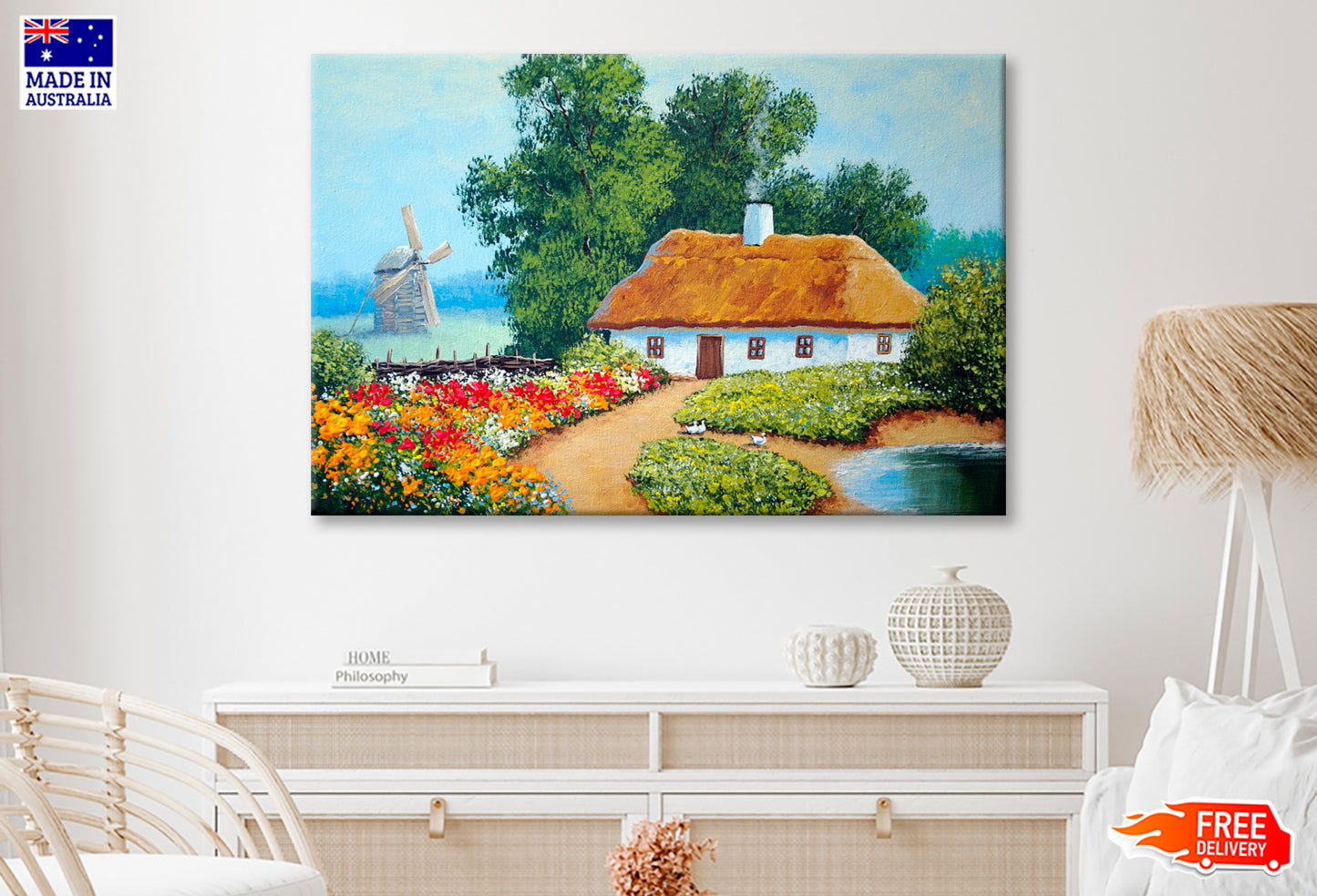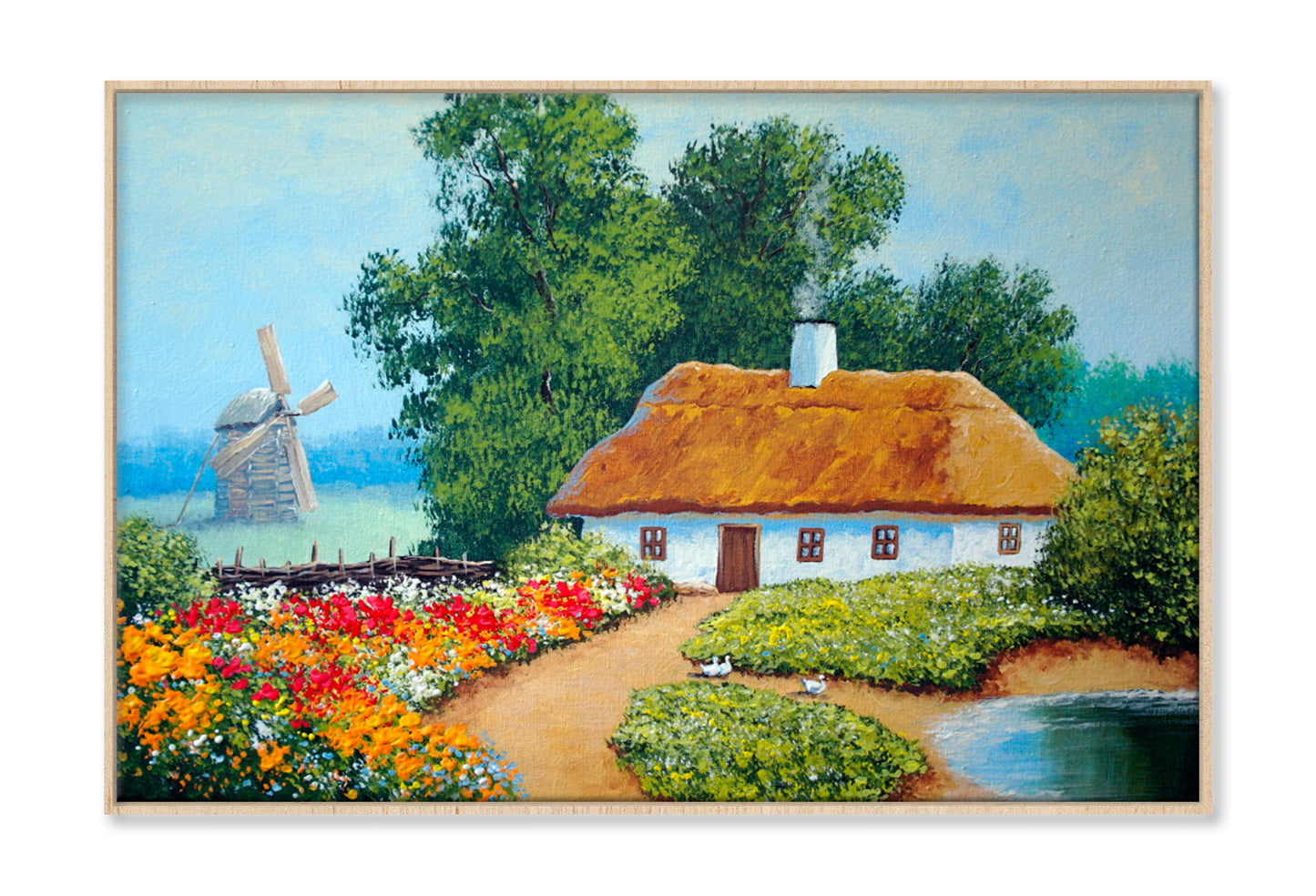 Nature, Old Village, House Oil Painting Wall Art Limited Edition High Quality Print