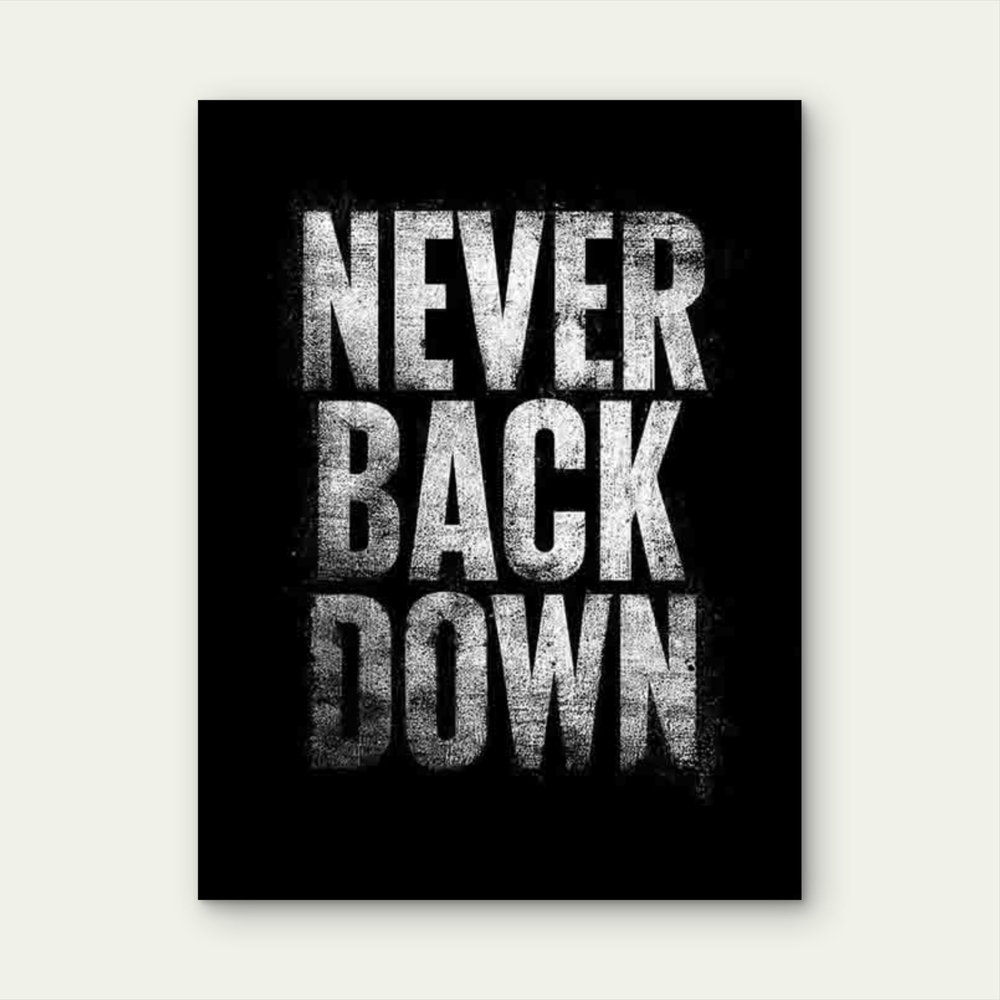 Never Back Down Inspirational 60x90cm Metal Print Ready to Hang