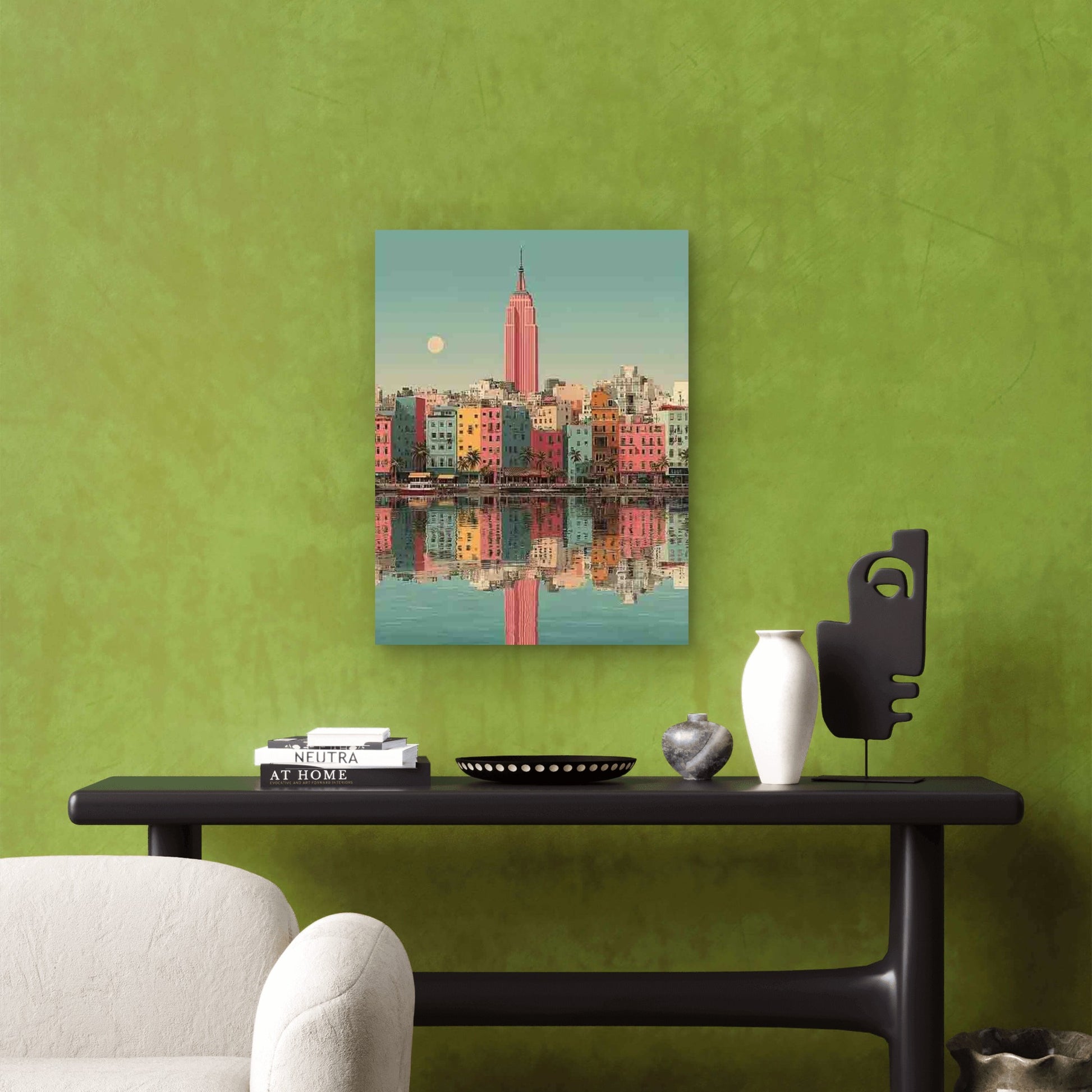 New York Soft Pink Cityscape 60x90cm Metal Print Ready to Hang