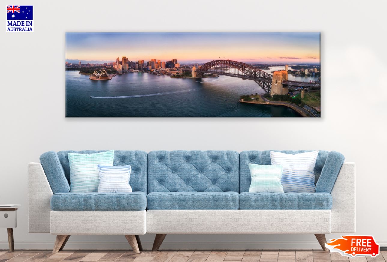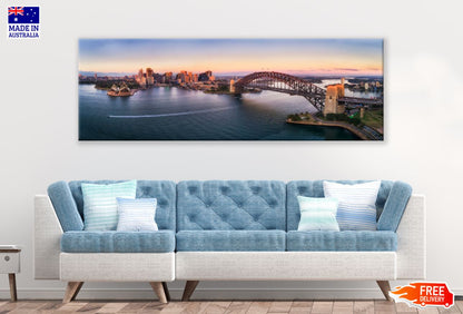 Panoramic Canvas Bridge Sunset Scenic High Quality 100% Australian Made Wall Canvas Print Ready to Hang