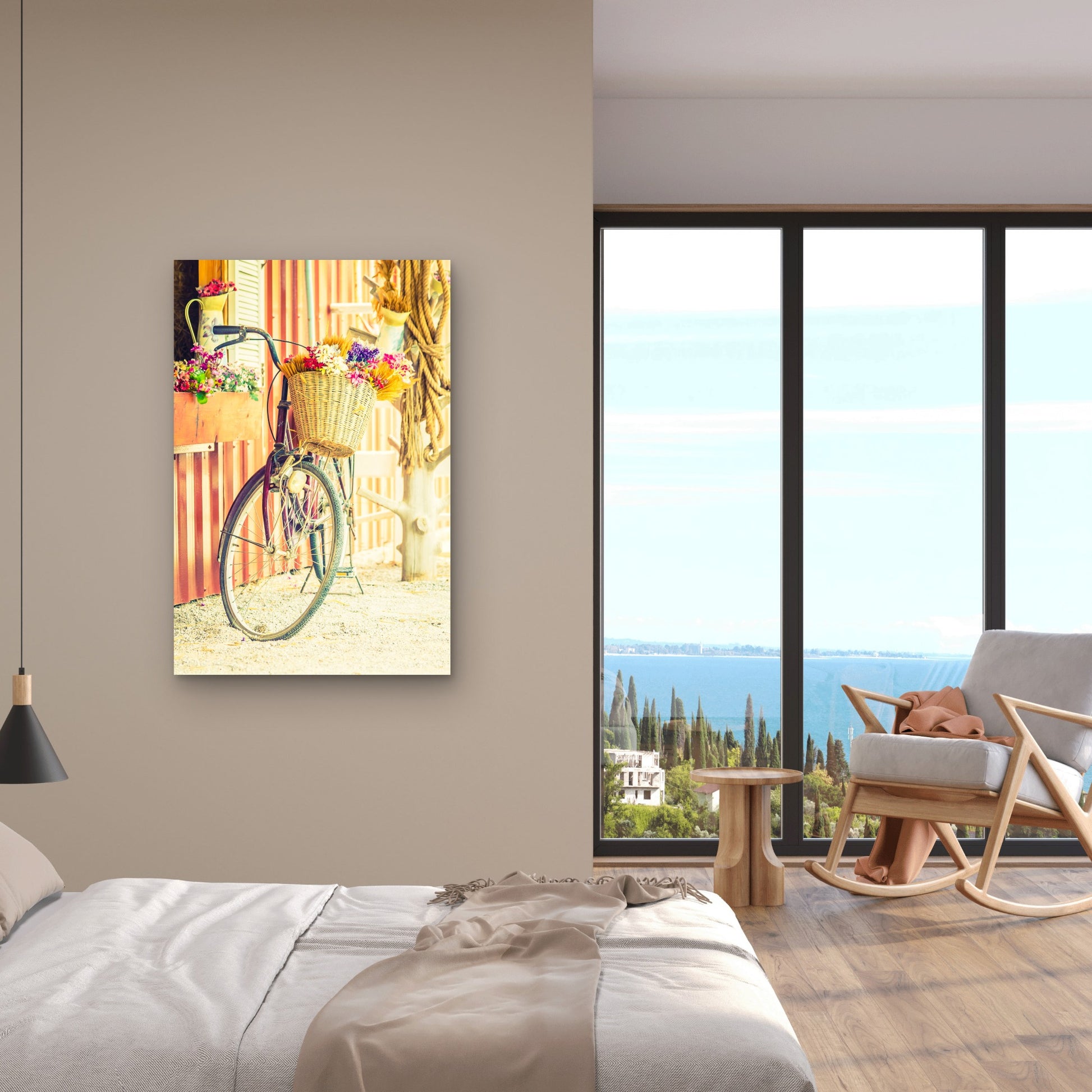 Pattern Retro Bicycle Decoration Flower 60x90cm Metal Print Ready to Hang