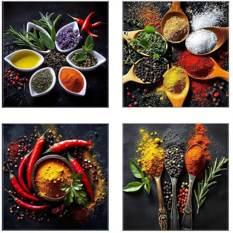 pcs Vintage Classic Floral Kitche Pattern Wall Art Canvas Framed