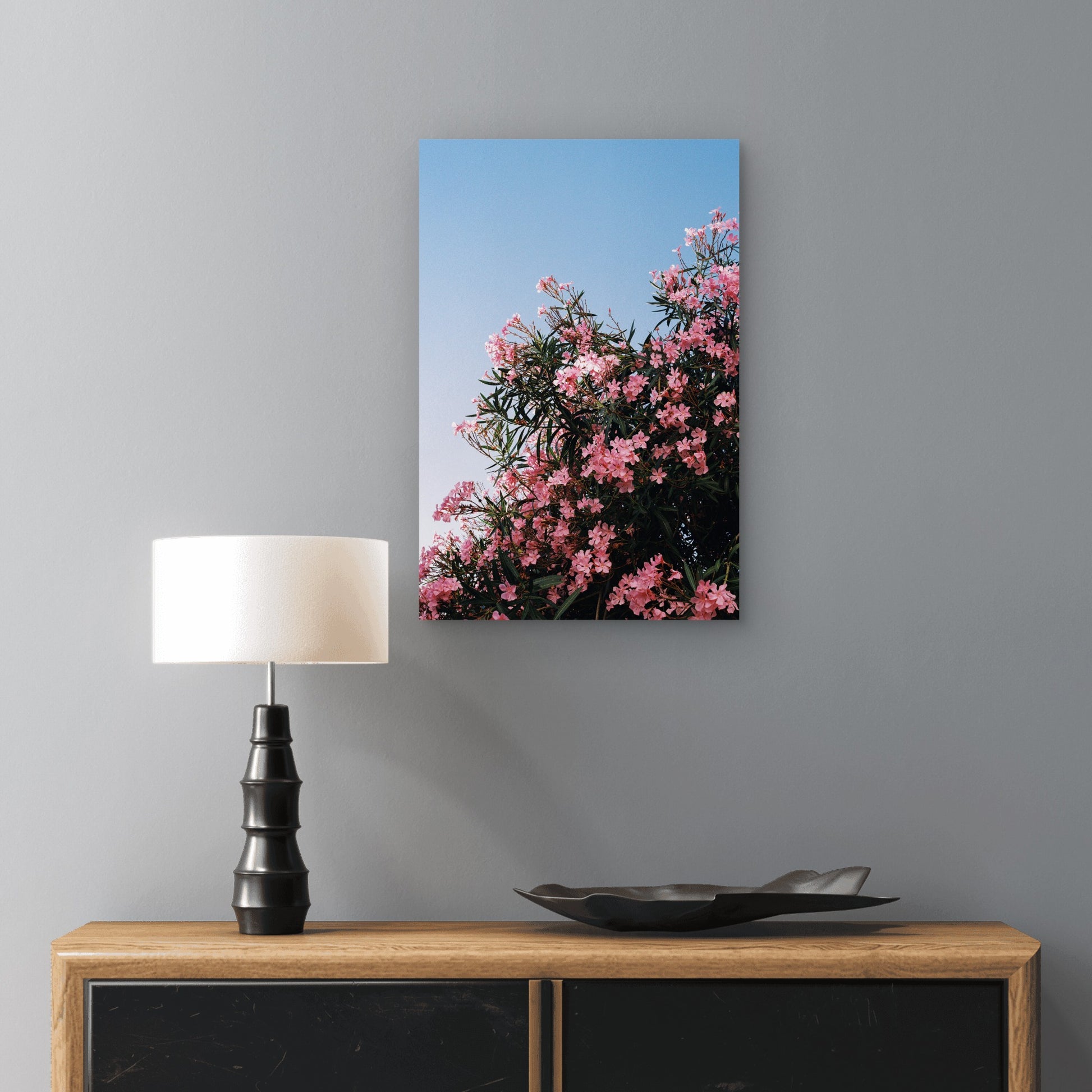 Pink Oleander Flowers Blooming Against Blue Sky 60x90cm Metal Print Ready to Hang