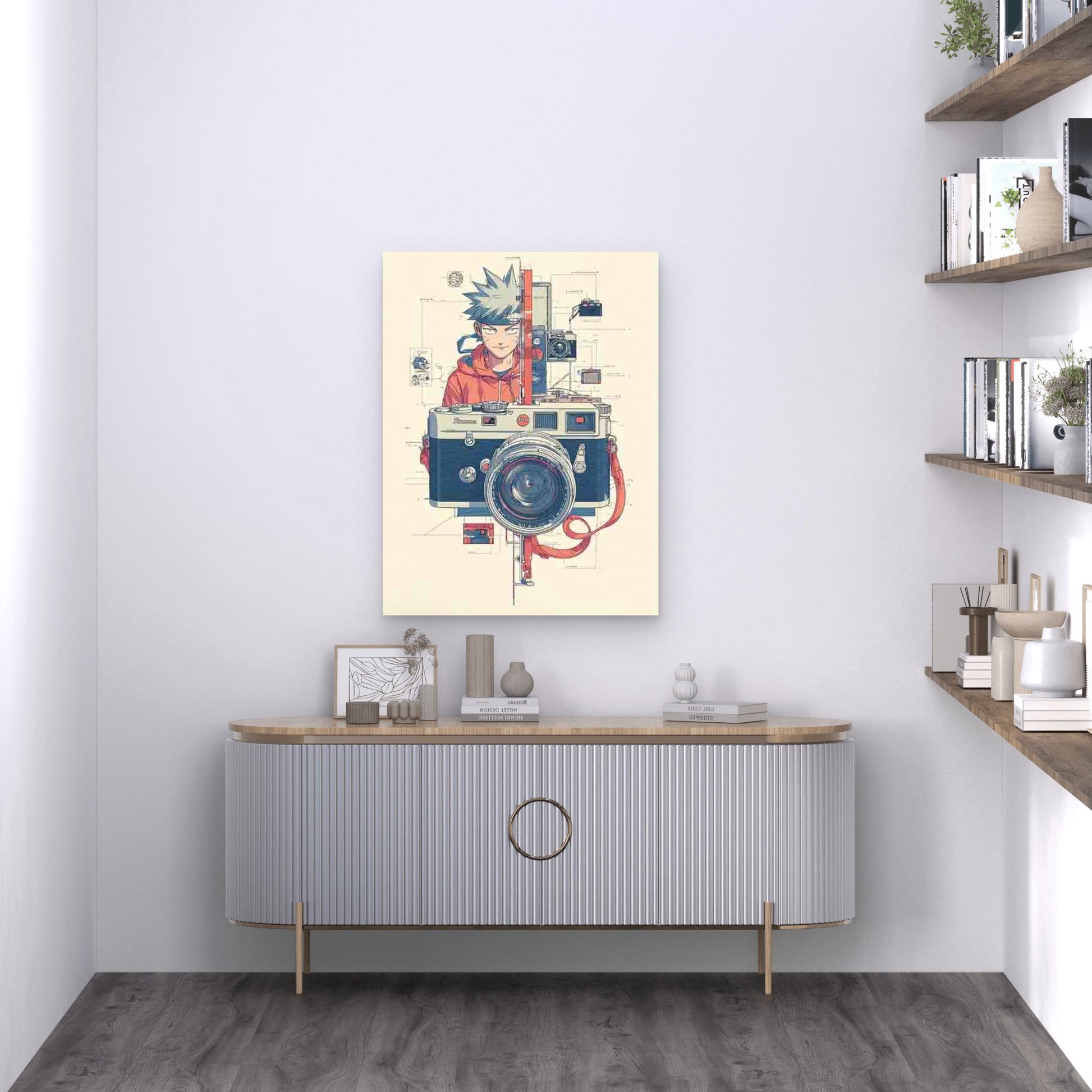 Retro Photography Decor with Red Camera Diagrams 60x90cm Metal Print Ready to Hang