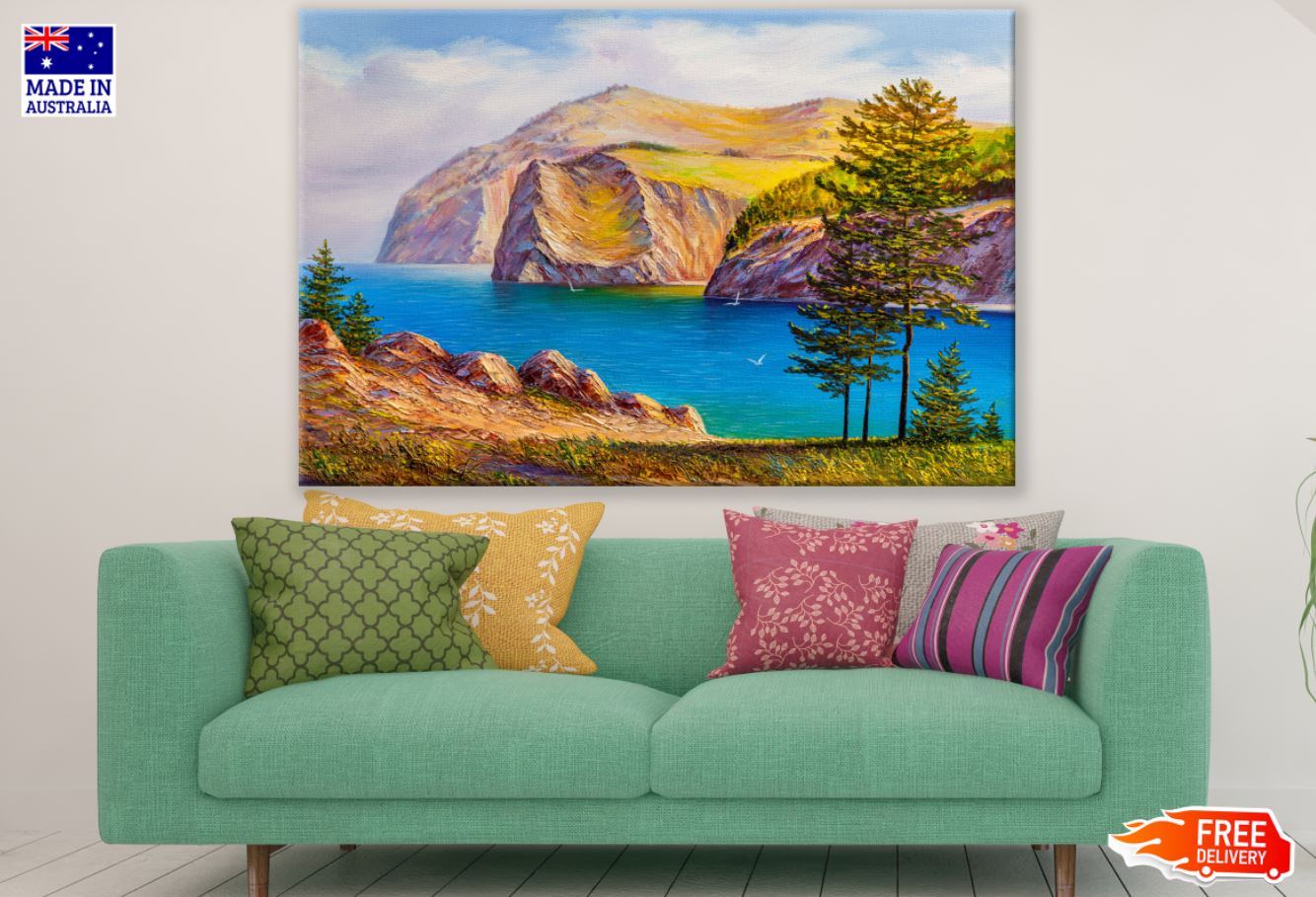 River & Mountains Oil Painting Print 100% Australian Made