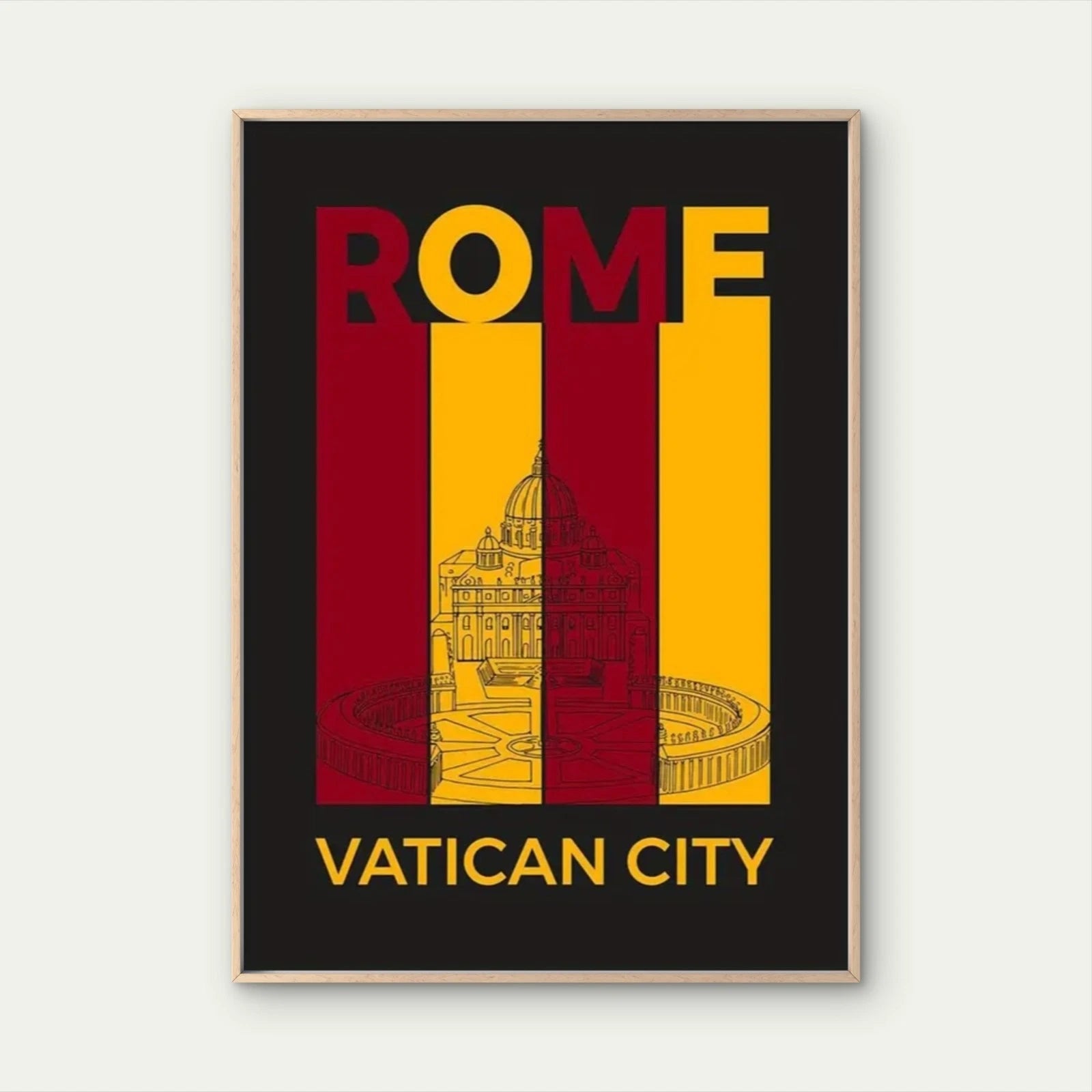 Rome Vibrant Red & Yellow Vatican City Travel Poster Print Wall Art