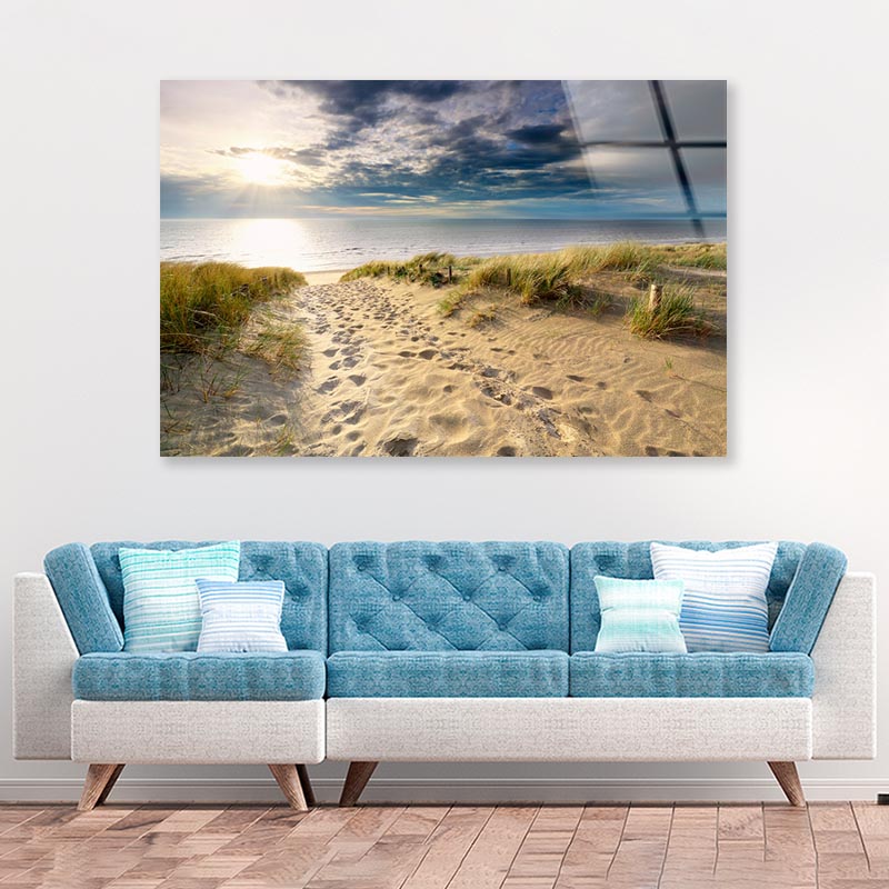 Sand Path to North Sea Beach in Sunshine, Holland Acrylic Glass Print Tempered Glass Wall Art 100% Made in Australia Ready to Hang
