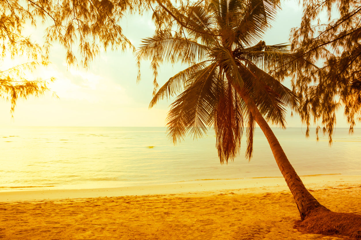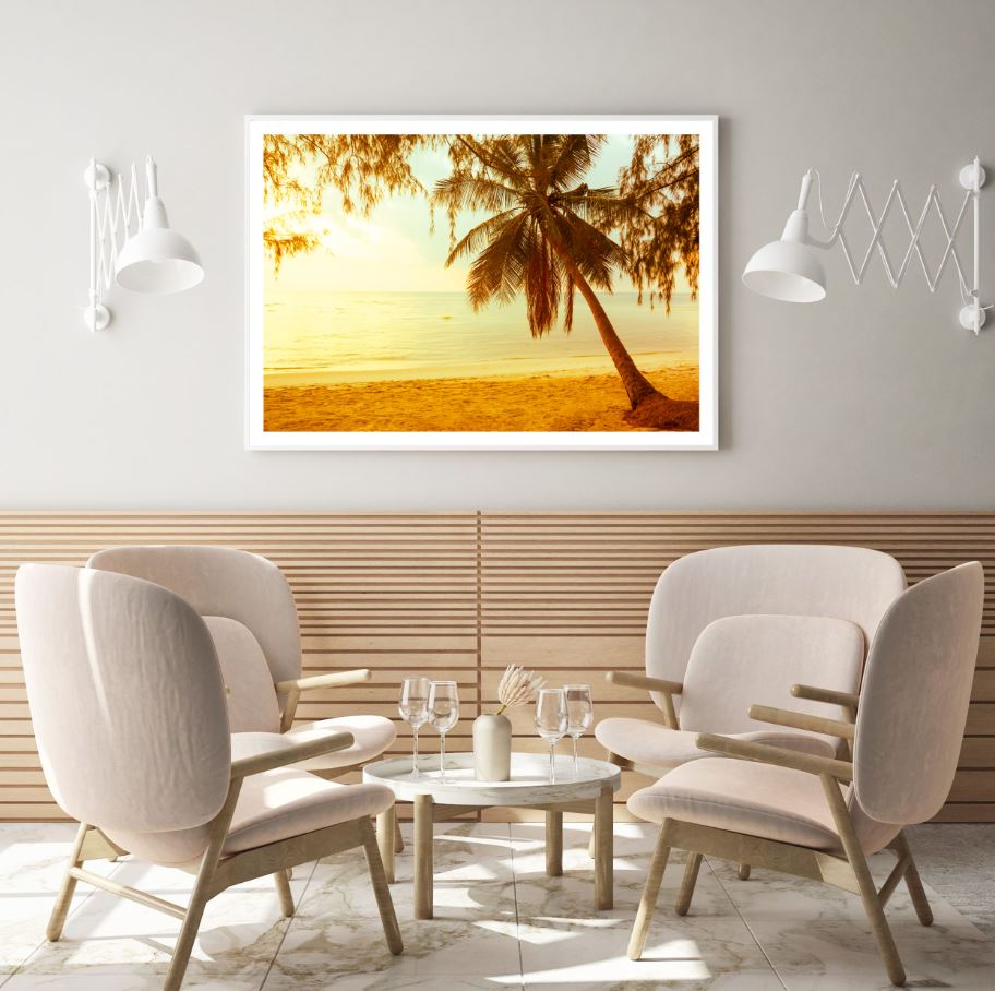 Sea & Palm Tree Sunset Photograph Home Decor Premium Quality Poster Print Choose Your Sizes