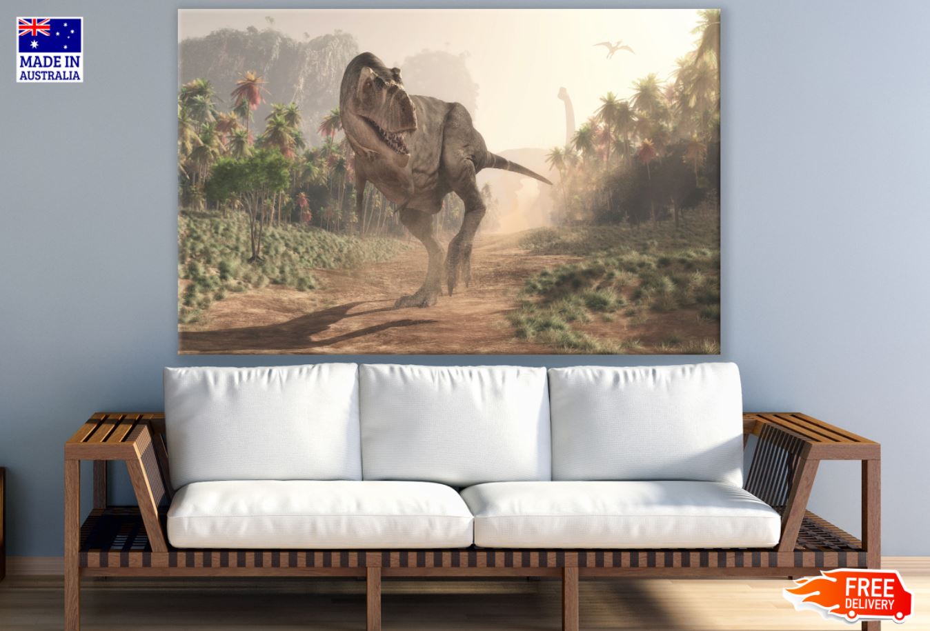 Dinosaurs in Forest Digital Paint Print 100% Australian Made