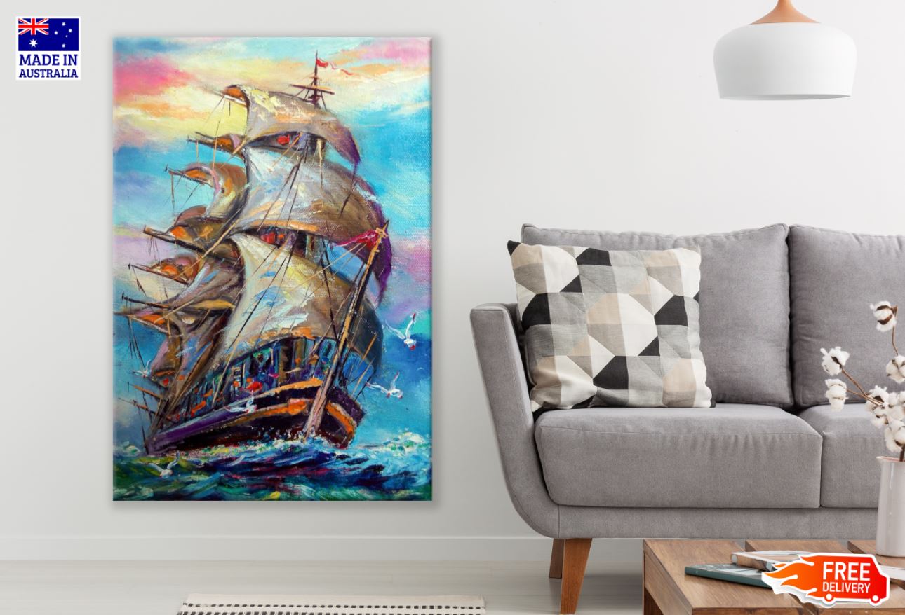 Ship Sailing on Sea Oil Painting Print 100% Australian Made
