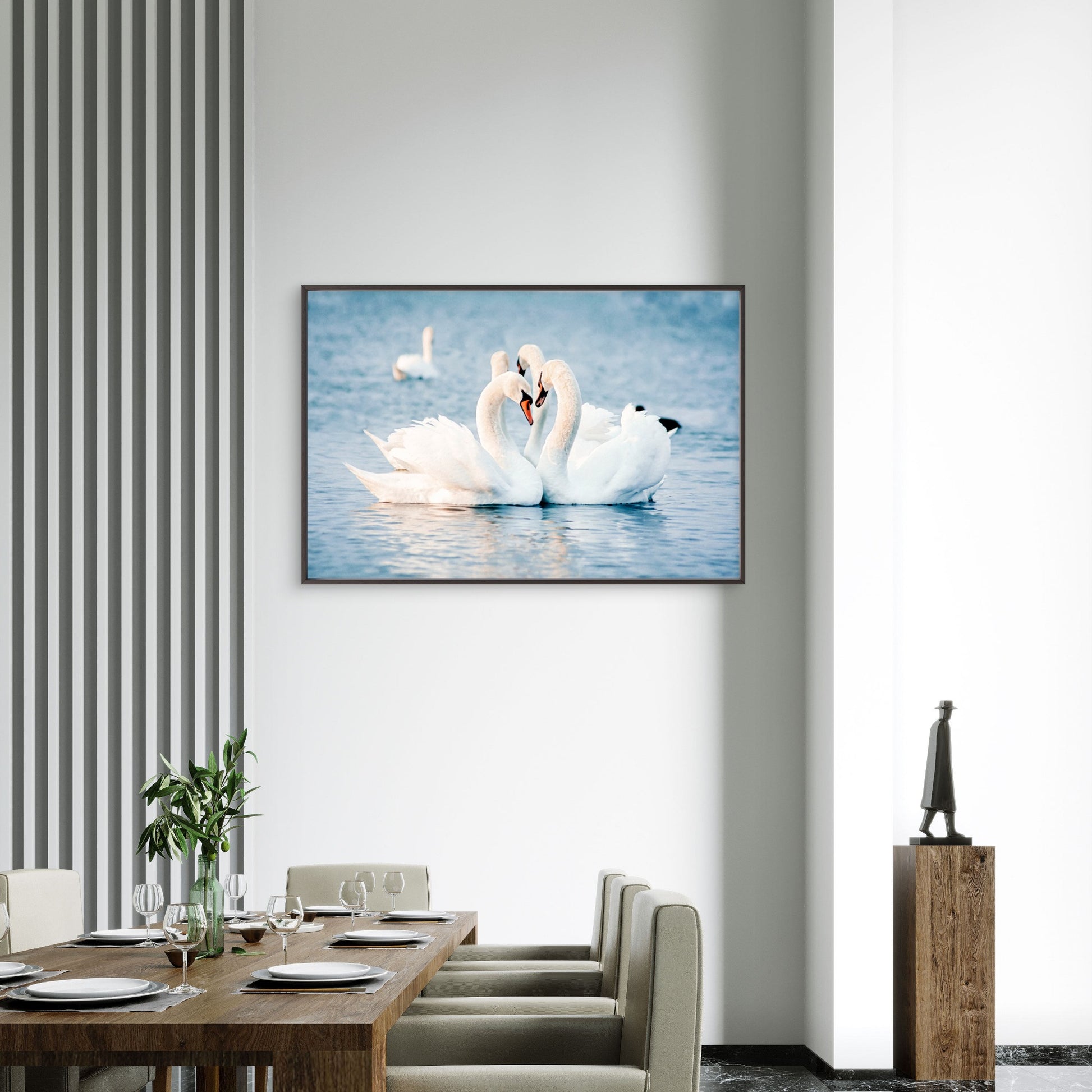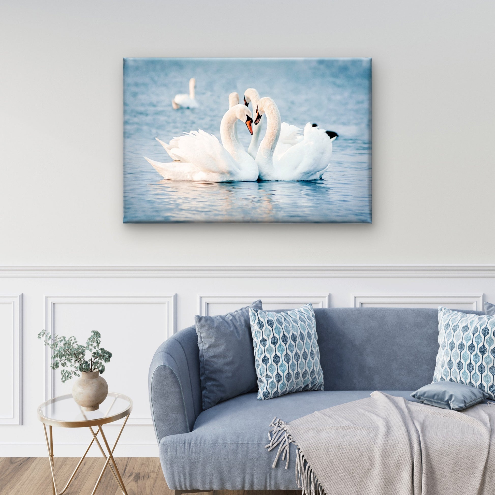 Soft Blue and White Mute Swans Forming a Heart Shape Wall Art Decor 100% Australian Made