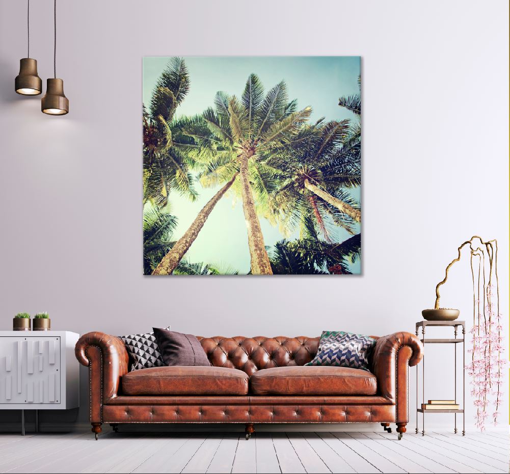 Square Canvas Palm Trees View From Below Photograph High Quality Print 100% Australian Made