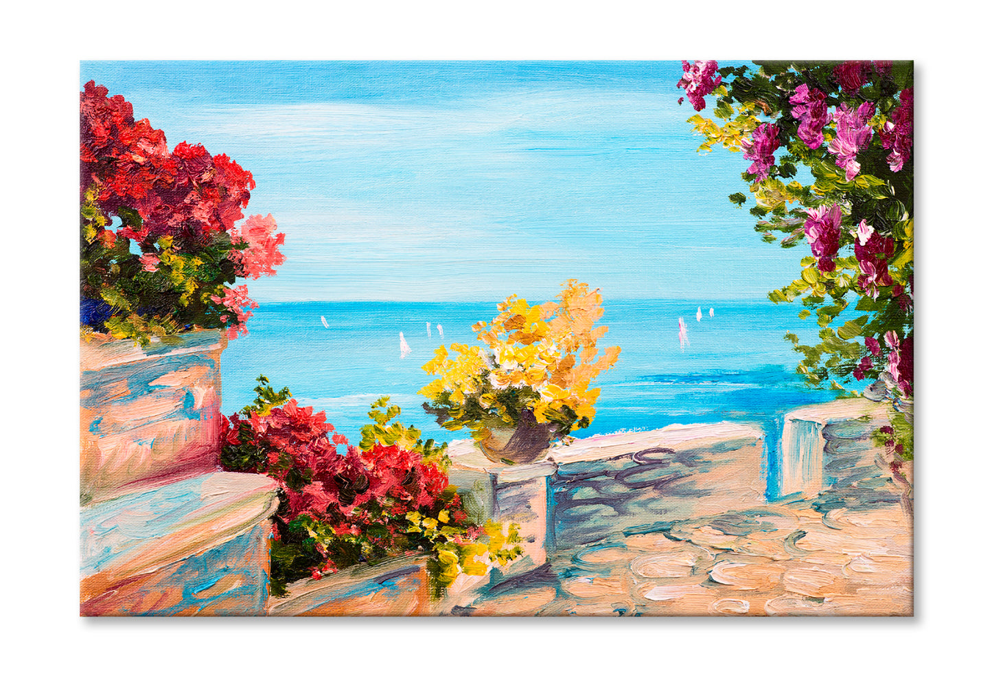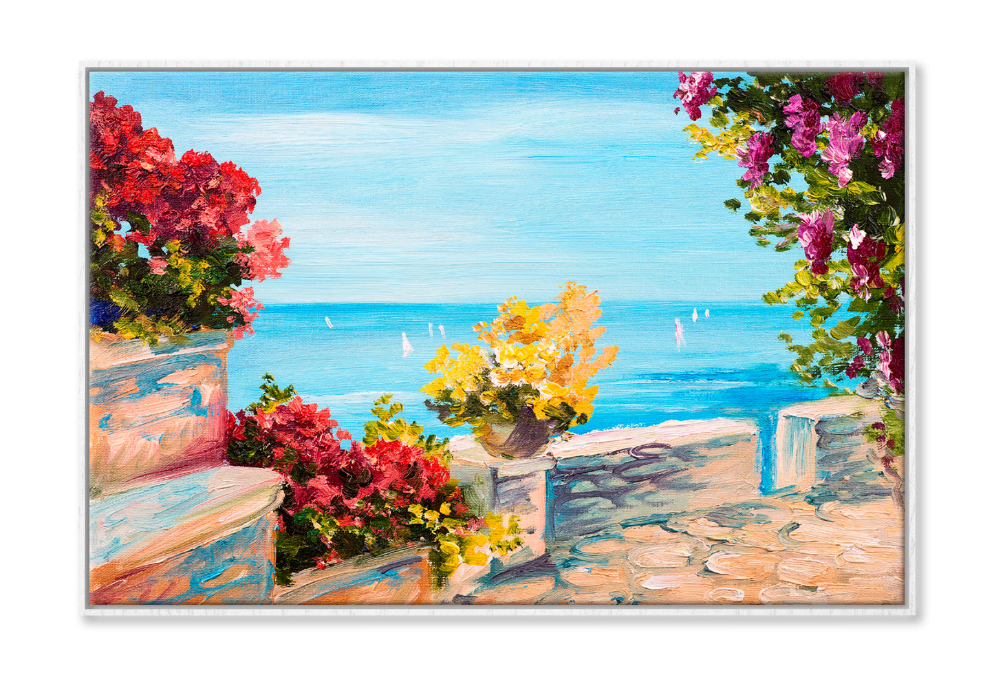 Terrace Near The Sea & Flowers Oil Painting Wall Art Limited Edition High Quality Print