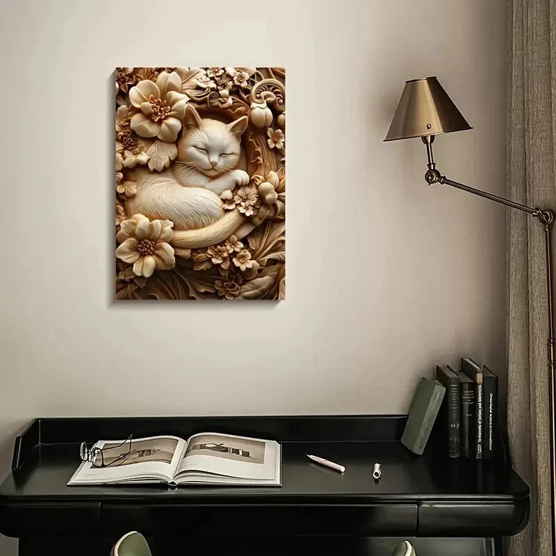 Thai Royal Cat Among Blooming Flowers 40x60cm Metal Print Ready to Hang