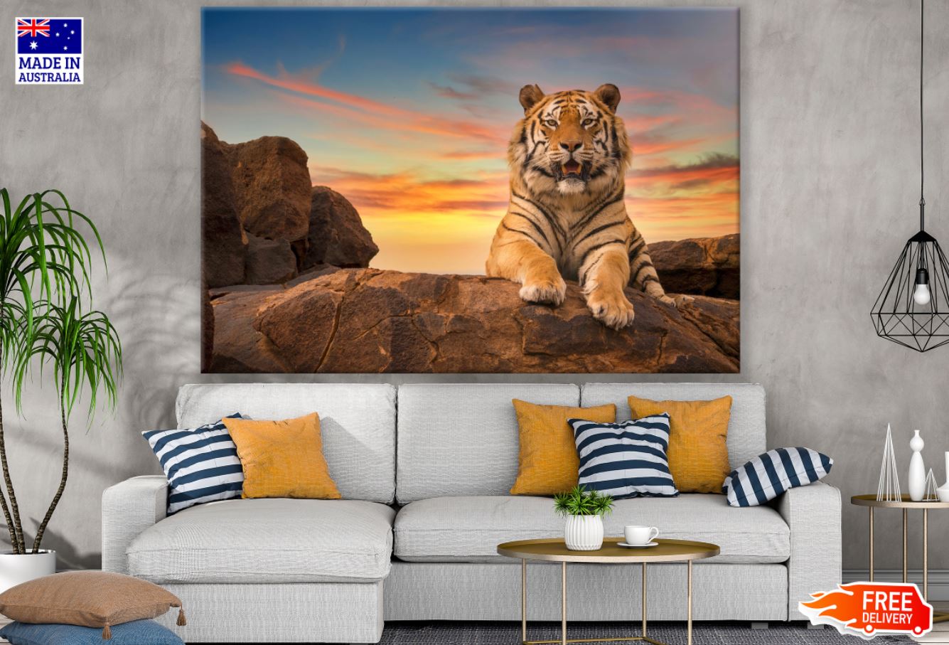 Tiger on a Rock Sunset Photograph Print 100% Australian Made