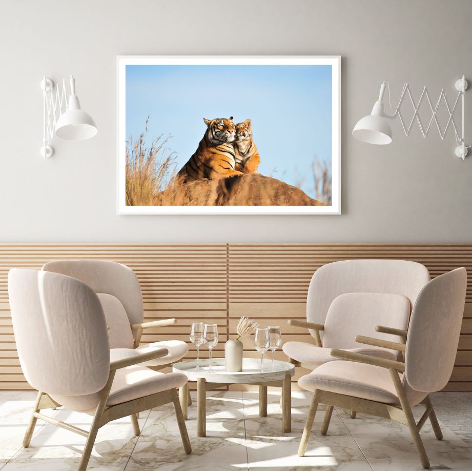 Tiger Pair on a Rock Photograph Home Decor Premium Quality Poster Print Choose Your Sizes