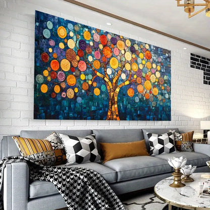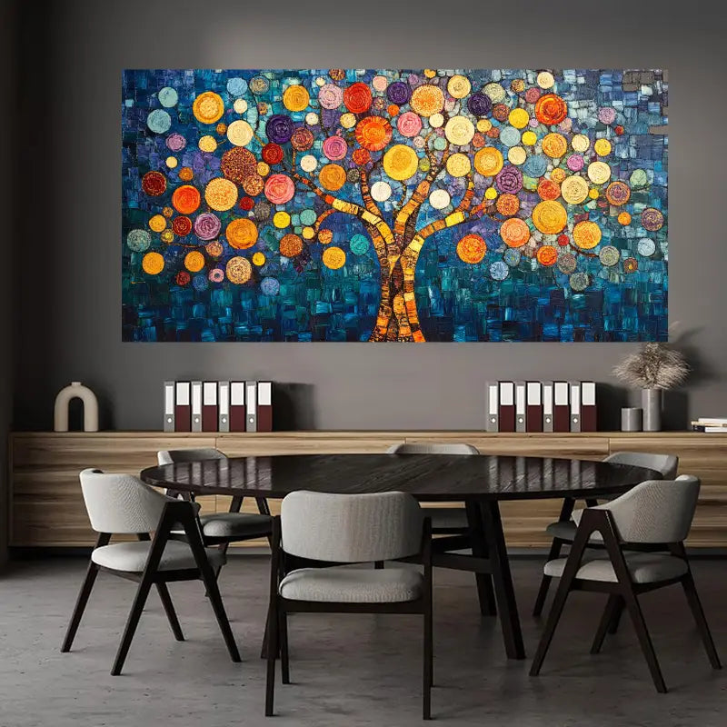 Tree of Life Circular Design in Blues & Oranges Wall Art wall canvas office home room framed 120x60cm
