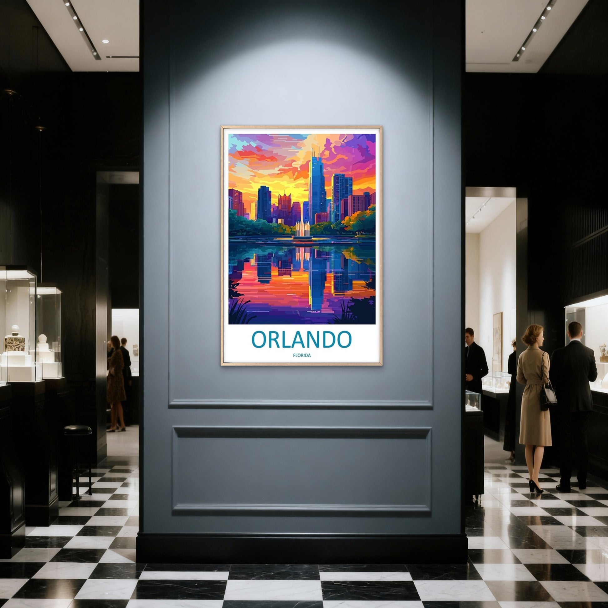 Vibrant Depiction of Orlando, Florida Travel Poster Print Wall Art