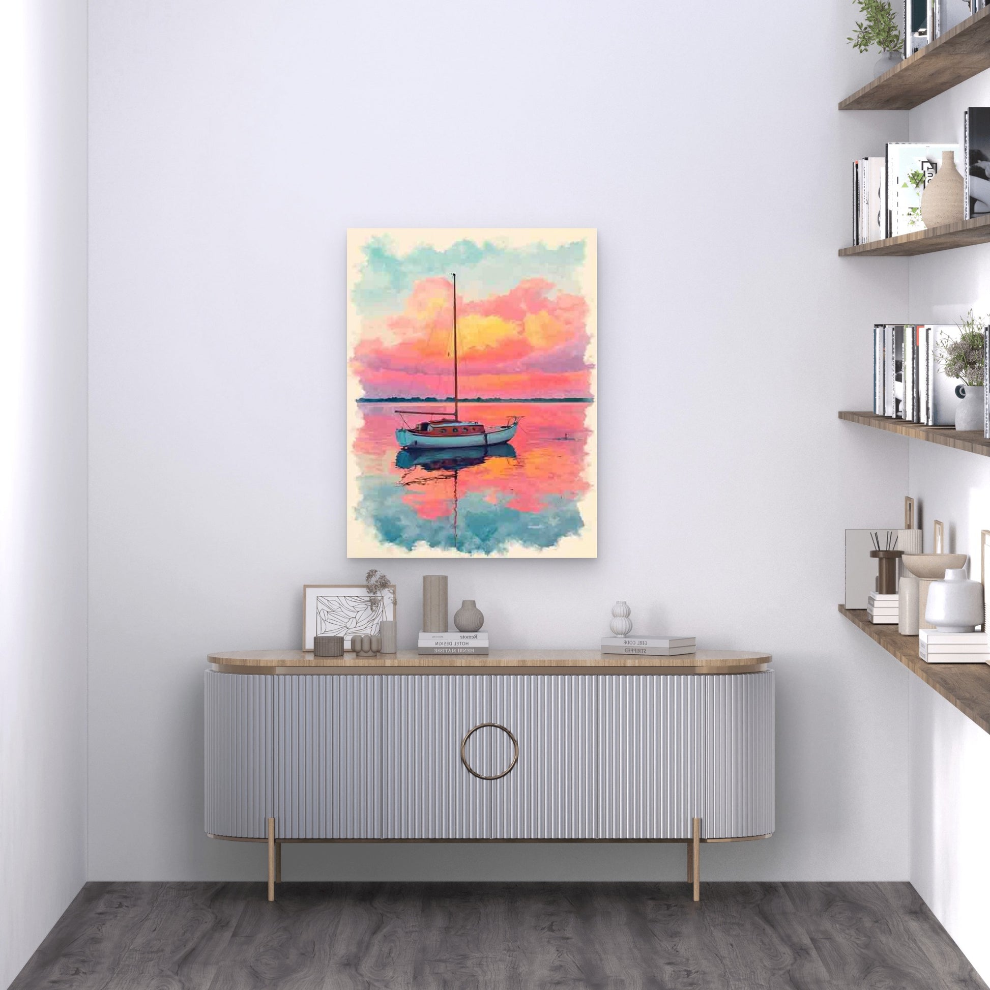 Vibrant Pink & Orange Sunset Nautical 60x90cm Metal Print Ready to Hang