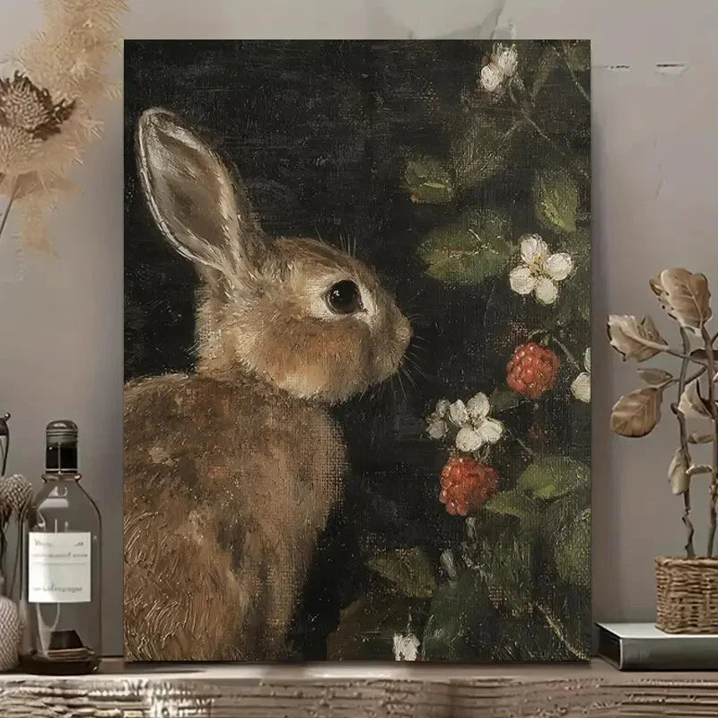 Vintage Rabbit Farmhouse Painting 40x60cm Metal Print Ready to Hang