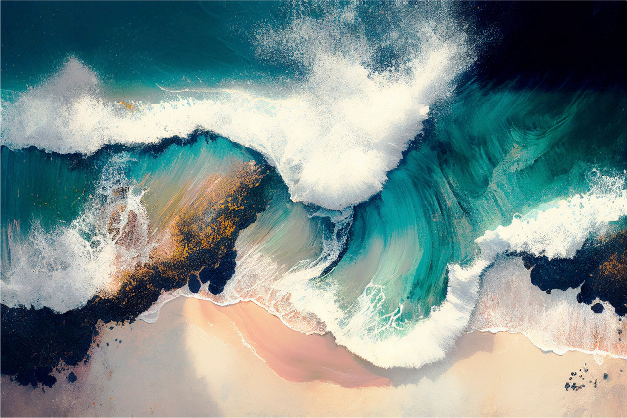 Waves Dance on the Shore Painting Wall Art Decor 100% Australian Made