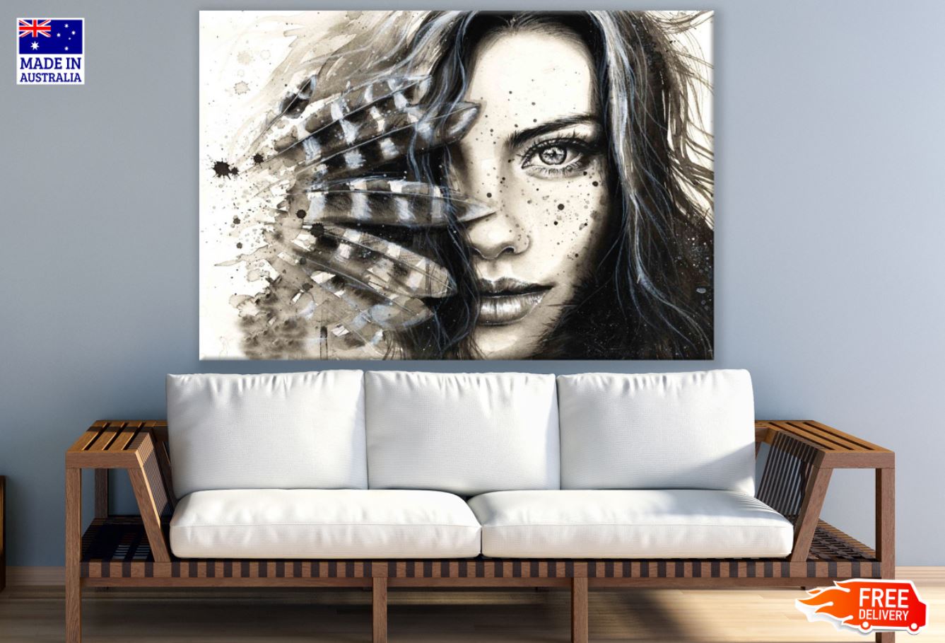 Woman Face Closeup Fashion B&W Painting Print 100% Australian Made