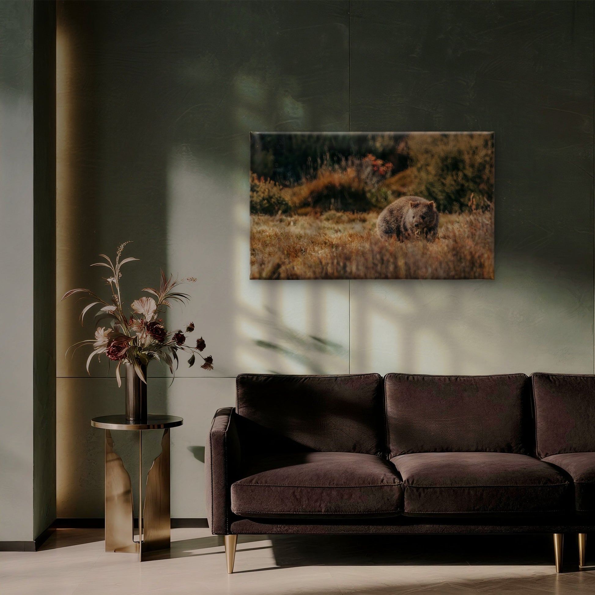 Capture the charm of a wombat grazing in the scenic plains of Cradle Mountain. This beautiful wall art decor adds a touch of Australia’s wilderness and warmth to your home, 100% Australian made.