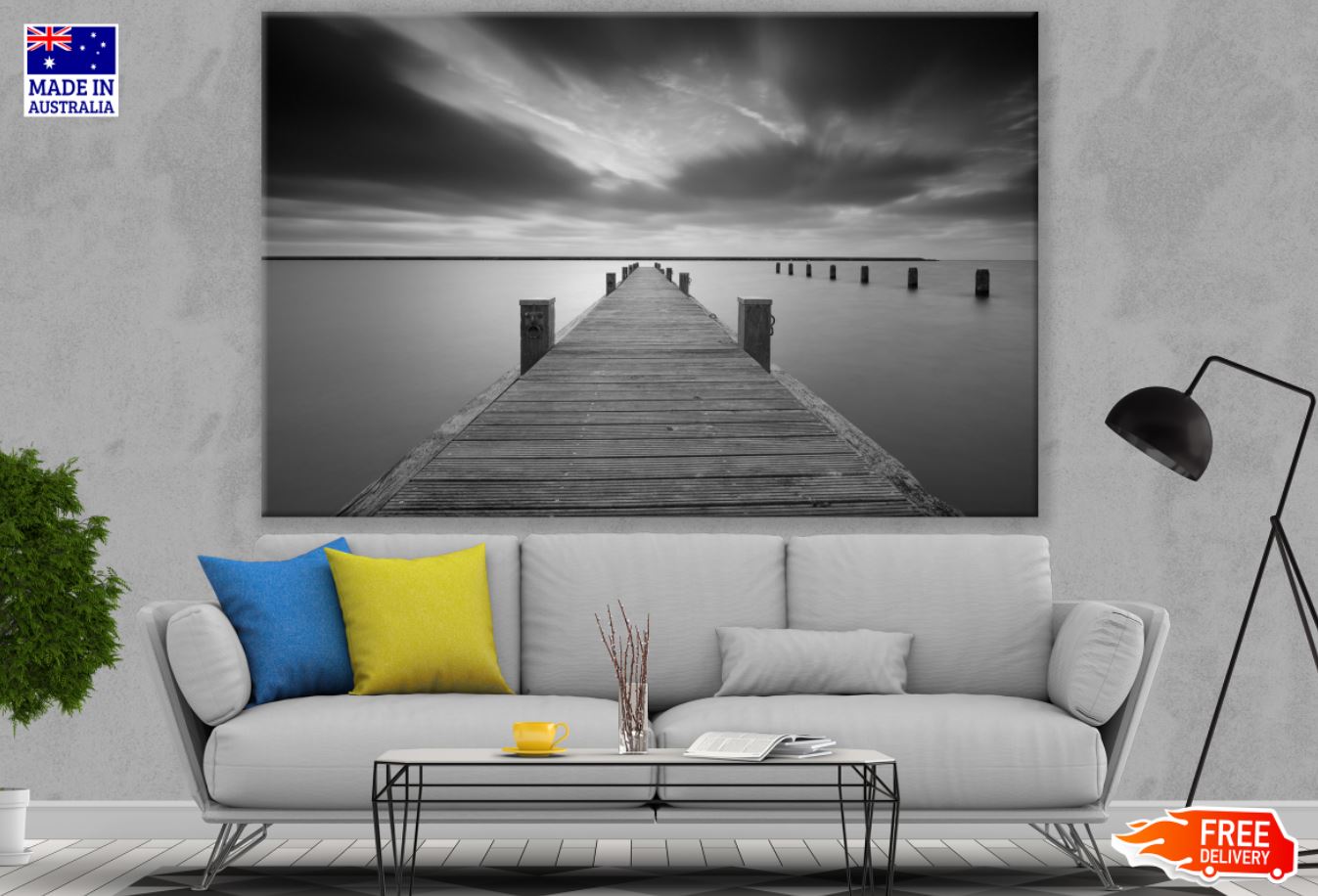 Wooden Pier Over Lake B&W View Print 100% Australian Made