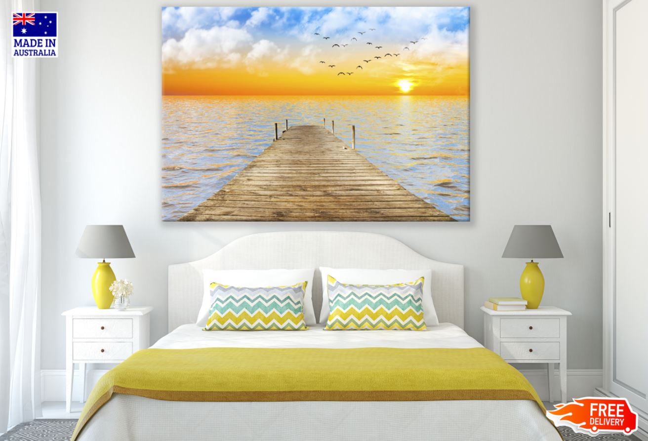 Wooden Pier Over Lake Scenery Print 100% Australian Made
