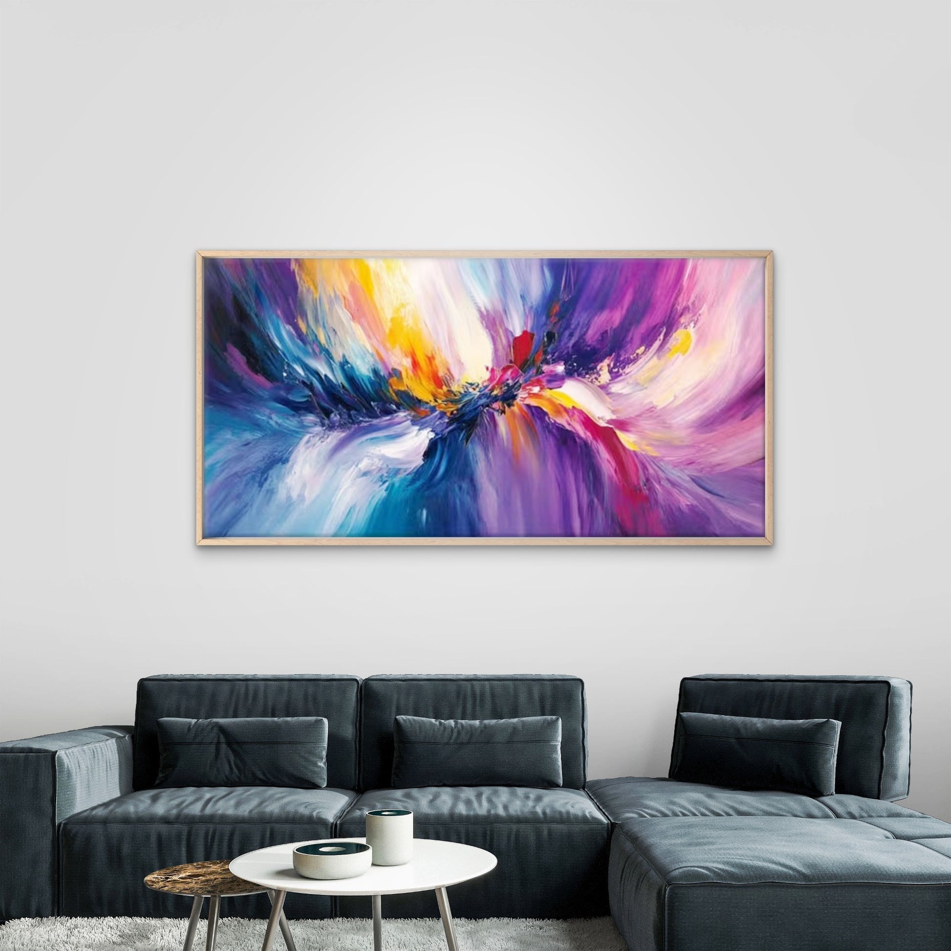 Yellow, Pink & Purple Abstract Wall Art Canvas Office Home Room Framed 120x60cm